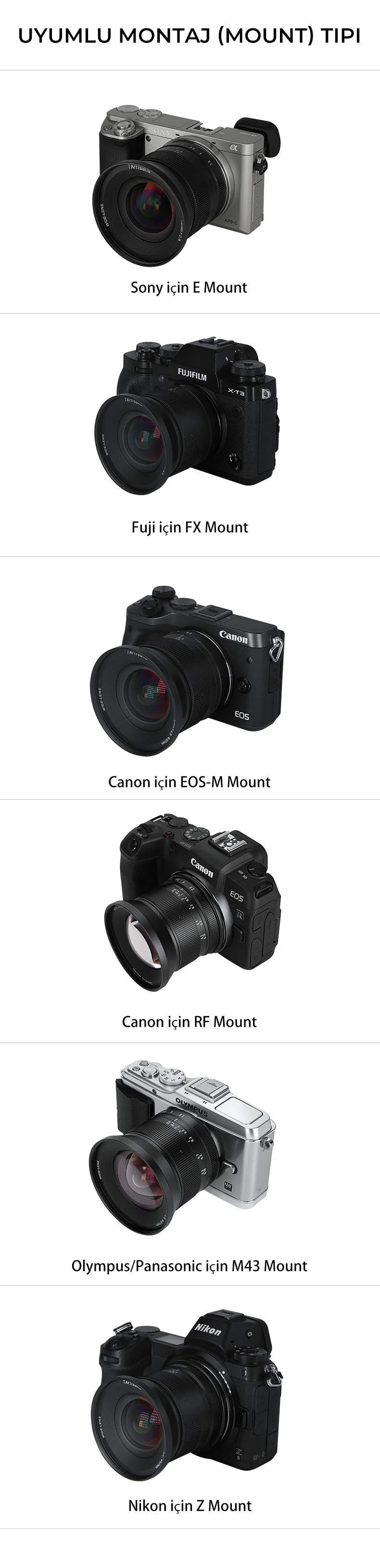 Geniş açılı asal lens, APS-C formatlı aynasız kameralar için tasarlanmıştır ve 18 mm eşdeğer odak uzaklığı sunar.