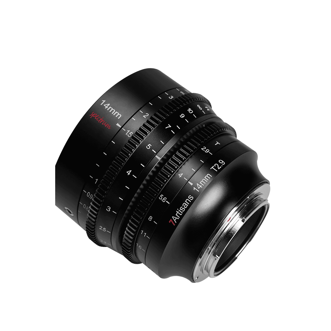 7artisans Photoelectric'in bu ultra geniş 14 mm T2.9 Spectrum Prime Cine Lens'ini tam çerçeve, kameranızda kullanarak keskin, yüksek kaliteli görüntüler elde edin. T2.9'luk maksimum diyafram açıklığı ve 10 iris bıçağıyla 9 grupta 13 elemandan oluşan bir lens yapısı, minimum odak solumasıyla pürüzsüz, dairesel bir bokeh oluşturur. Spectrum sinema lensleri, seri boyunca tutarlı bir görünüm ve dişli konumlarını koruyarak lens değişimlerini yumuşatır.