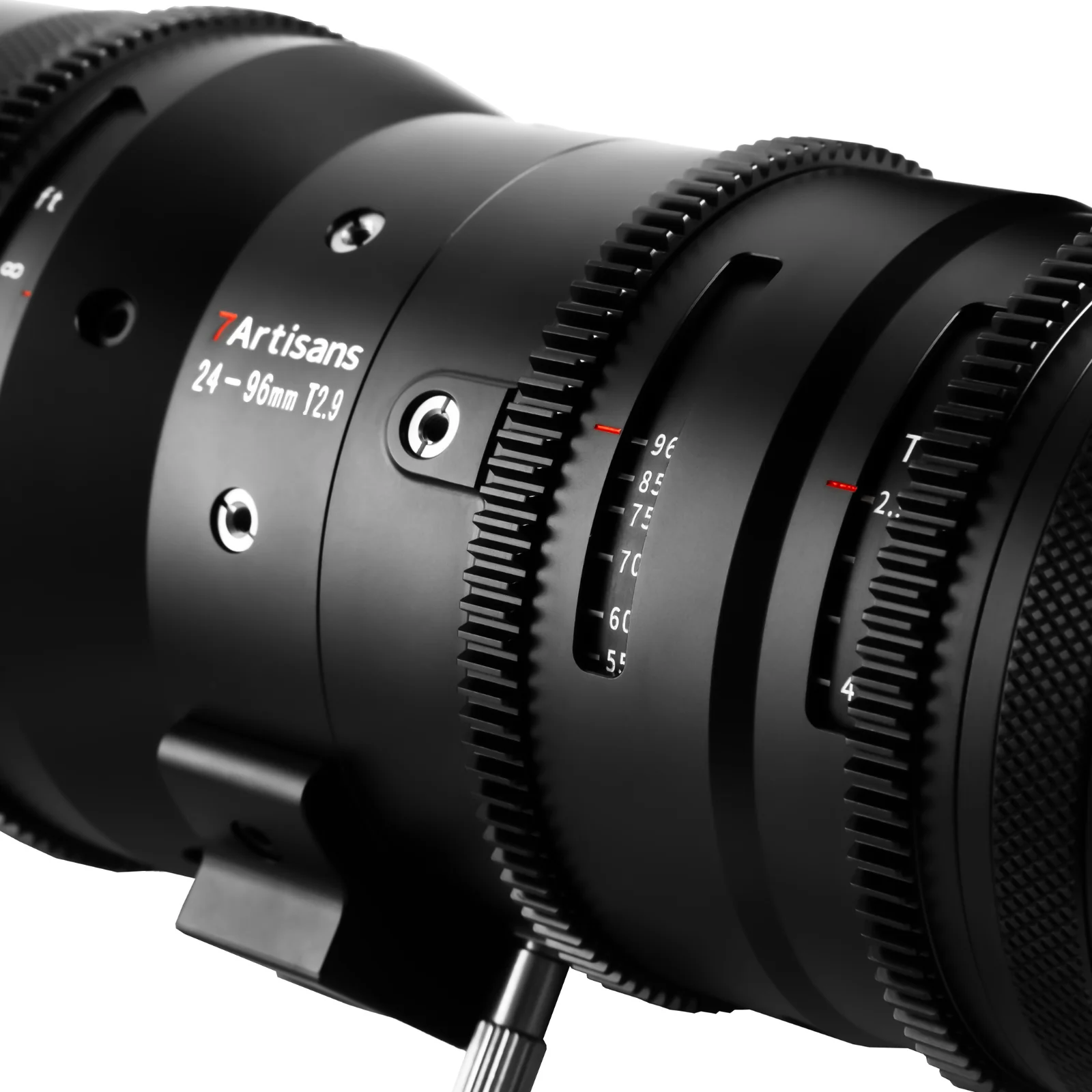 7artisans Photoelectric'in Sprite 24-96mm T2.9 Cine Zoom Lens'i ile lens kitinize sinema tarzı bir zoom ekleyin. Bu ARRI PL montajlı lens, Super35 sensörleri kapsar ve zoom aralığı boyunca maksimum T2.9 diyaframa sahiptir. 24-96mm sinema zoom'u, 94mm ön dış çap, tıklanmamış diyafram halkası, sinema tarzı 0.8 MOD odak, iris ve zoom dişli halkaları ve hem feet hem de metre cinsinden odak işaretleri içerir.