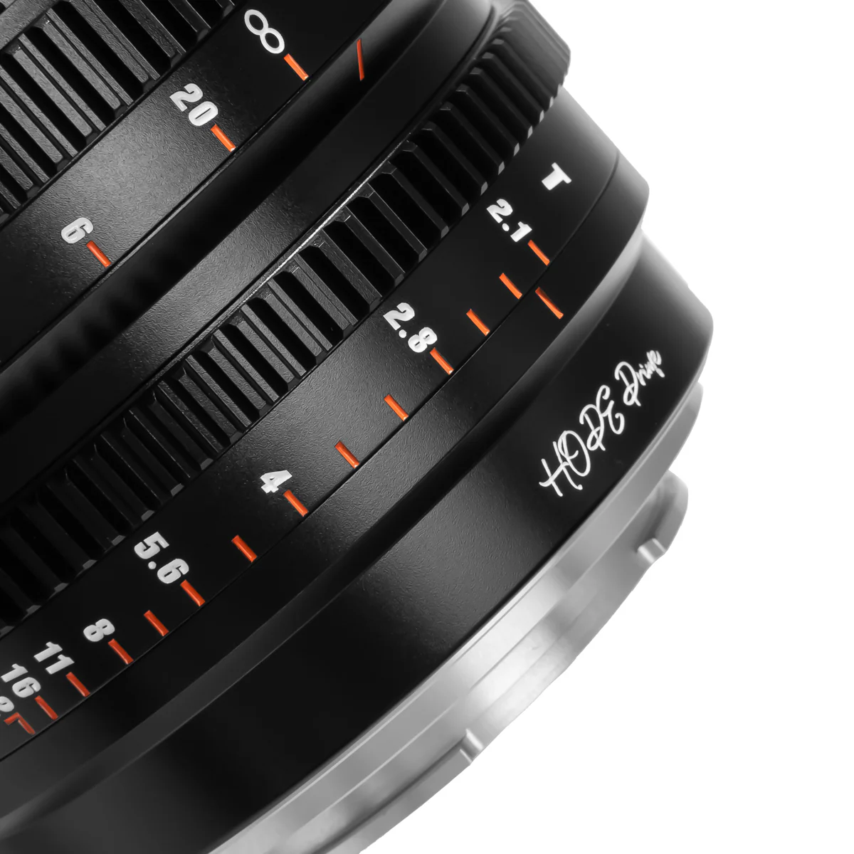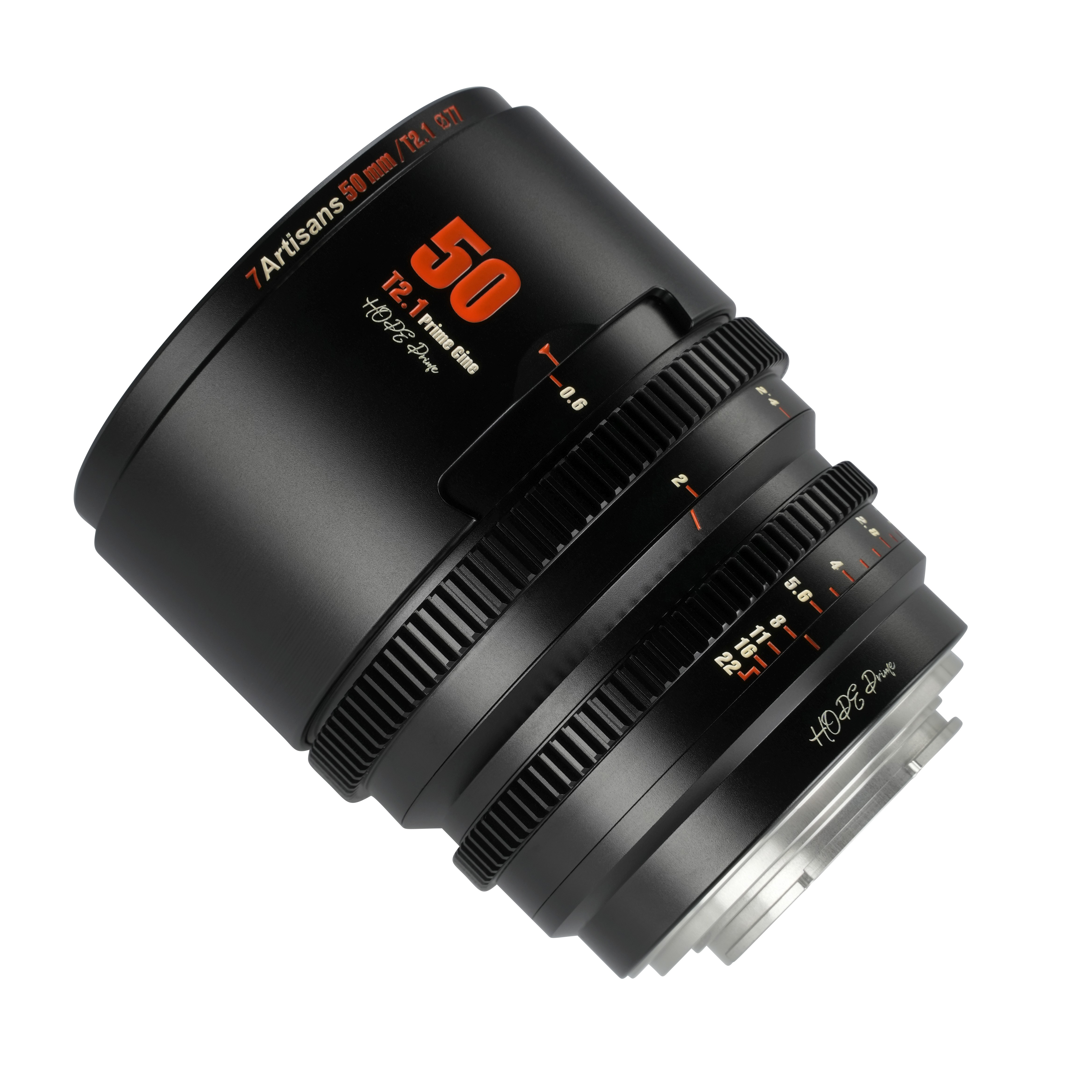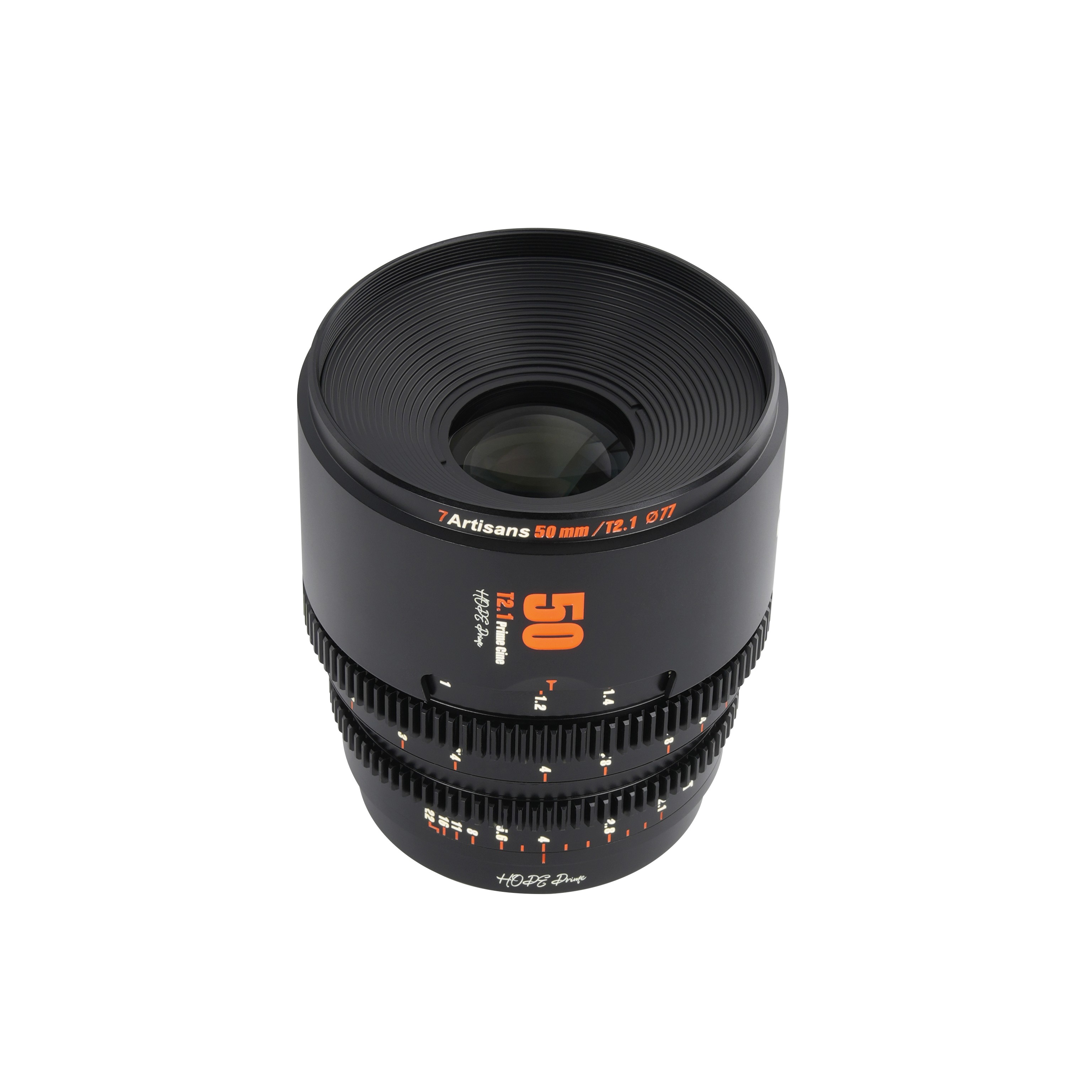 7artisans Photoelectric'in siyah Hope 50mm T2.1 S35 Sinema Lensi, Super35 sensörlü kameraları kapsayan kompakt ve hafif bir lenstir. Hope serisindeki her lens, lens değişimleri sırasında lens aksesuarlarını ayarlamak için harcanan zamanı azaltan tutarlı lens dişli konumlarına sahip standart bir tasarıma sahiptir. Hope 50mm lens, düşük ışık yakalama ve sığ alan derinliği görünümü için T2.1 maksimum diyafram açıklığına, minimum lens solunumu ve sapmalarına ve parlamayı azaltan çok katmanlı bir nano kaplamaya sahiptir.
